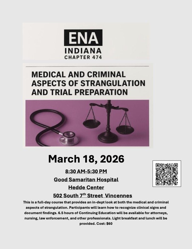 This course is a joint venture between many community partners, including the Chapter 474 East Central Indiana Emergency Nurses Association, Indiana Coalition Against Domestic Violence, EMS services, law enforcement, and others.